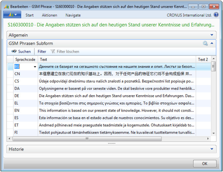Darstellung der Textbaustein (Phrasen) in NAV 2013